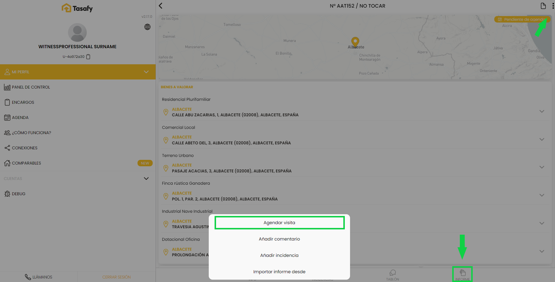 Gestionando la valoración como Técnico o Profesional, en el entorno de Mobile, se completa el informe y se vuelve a enviar a Web. Los pasos que se siguen son los siguientes: